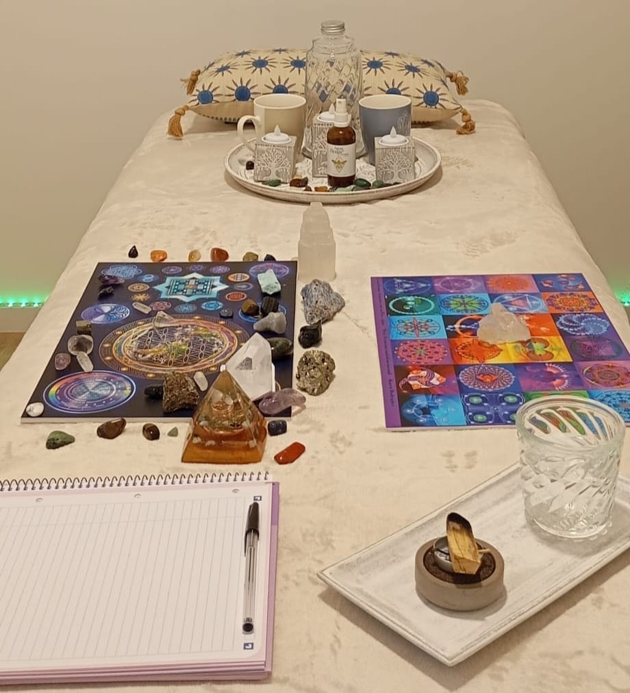 Conecto-me contigo e uso a Mesa para identificar e limpar bloqueios energéticos e/ou espirituais.
